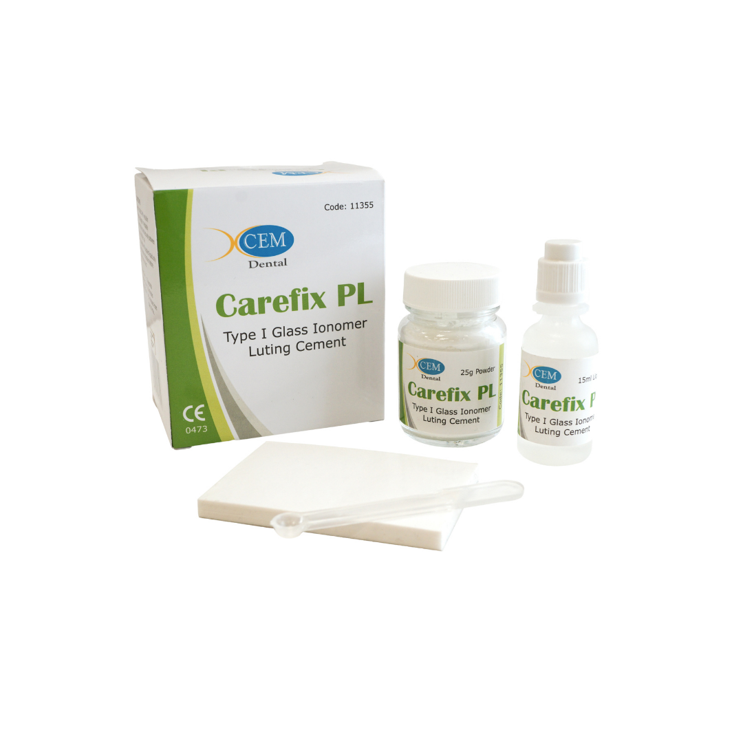 CAREFIX PL powder/liquid GI luting cement is used for cementation of inlays, crown, bridges, facing, orthodontic purpose, cavity linings under amalgam, composite, silicate and acrylic restorations, temporary fillings and deciduous teeth fillings.